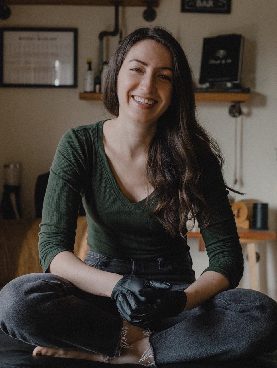 Cambria Leach is a stick and poke artist and tattooist known as Grooveline Tattoo, featuring nature-based elements, delicate shading, and fine line dot work. She is based in Los Angeles, CA.